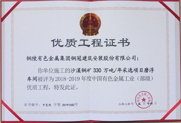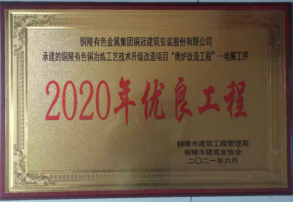 銅陵市2020年優良工程(銅陵有色銅冶煉...